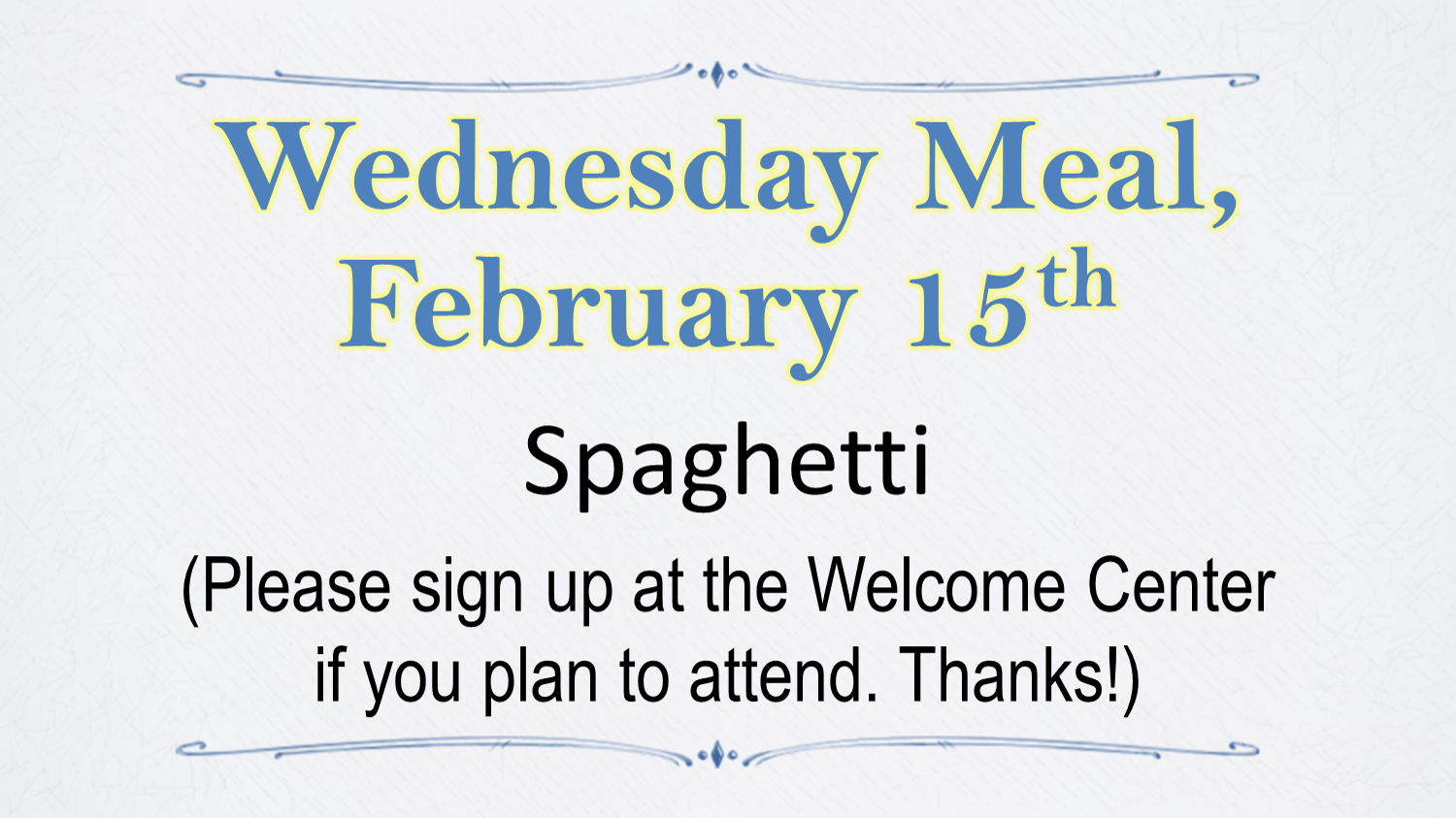 Sign up in the welcome center or contact us if you’d like to join us for dinner in the fellowship hall! $4.00 per adult, $2.00 per child, or $10.00 per family. College students eat free!