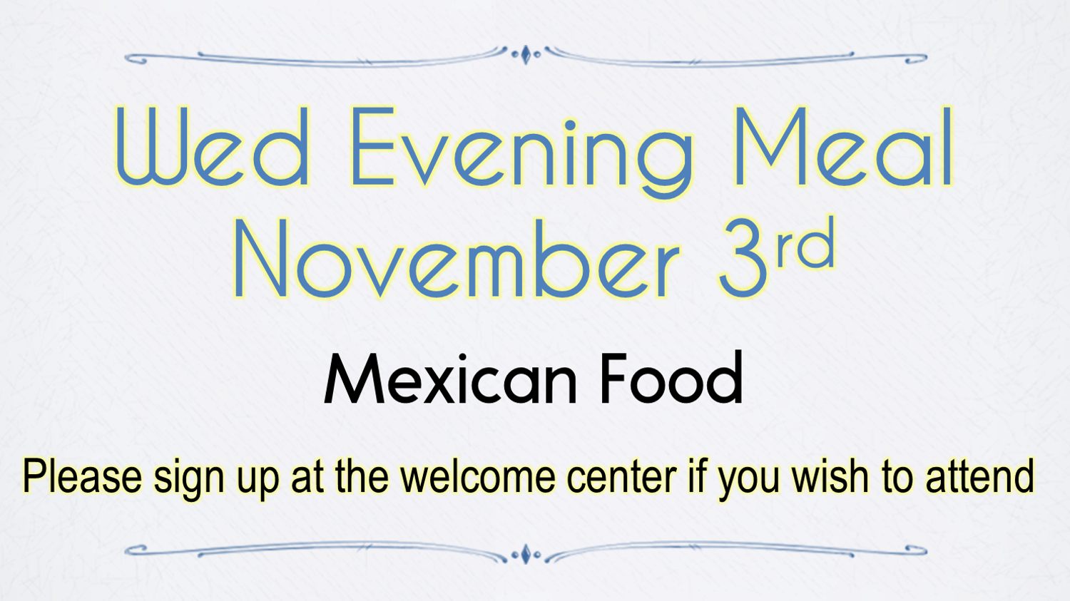 Wednesday Evening Prayer Service to follow after dinner at 6:00pm.